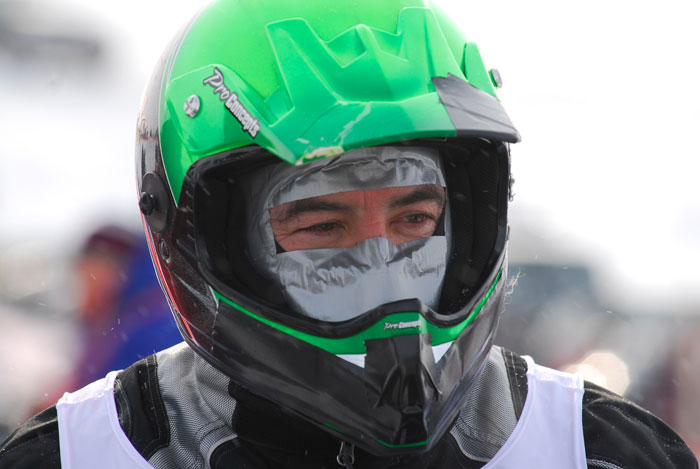 В этот момент на противоположной площадке начинается снегоходный марафон. Так как в прошлом году я уже снимал старт, решаю остаться на борьбе – это мне кажется более интересным. Ну а вам покажу, как выглядит марафон глазами зрителя. Вот суровые смелые парни готовятся к старту и копаются в моторе.