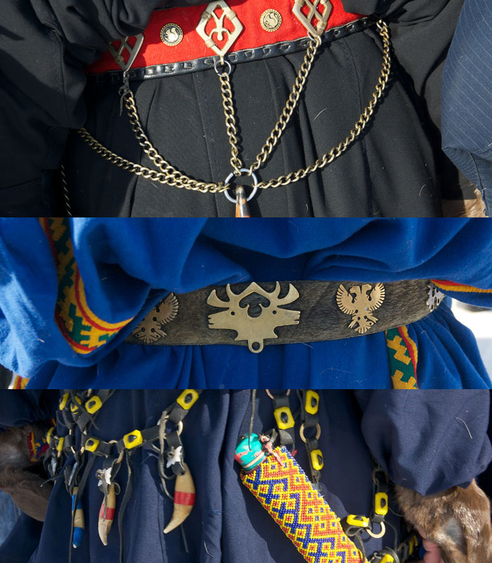 Состязание привлекает невероятное количество местных. Тут и ненцы, и ханты, и коми-зыряне. Зрители обступают площадку плотным кольцом, и если вы зайдете с тыла, то сполна оцените детали национальной одежды. В первую очередь бросаются в глаза нарядные пояса.
