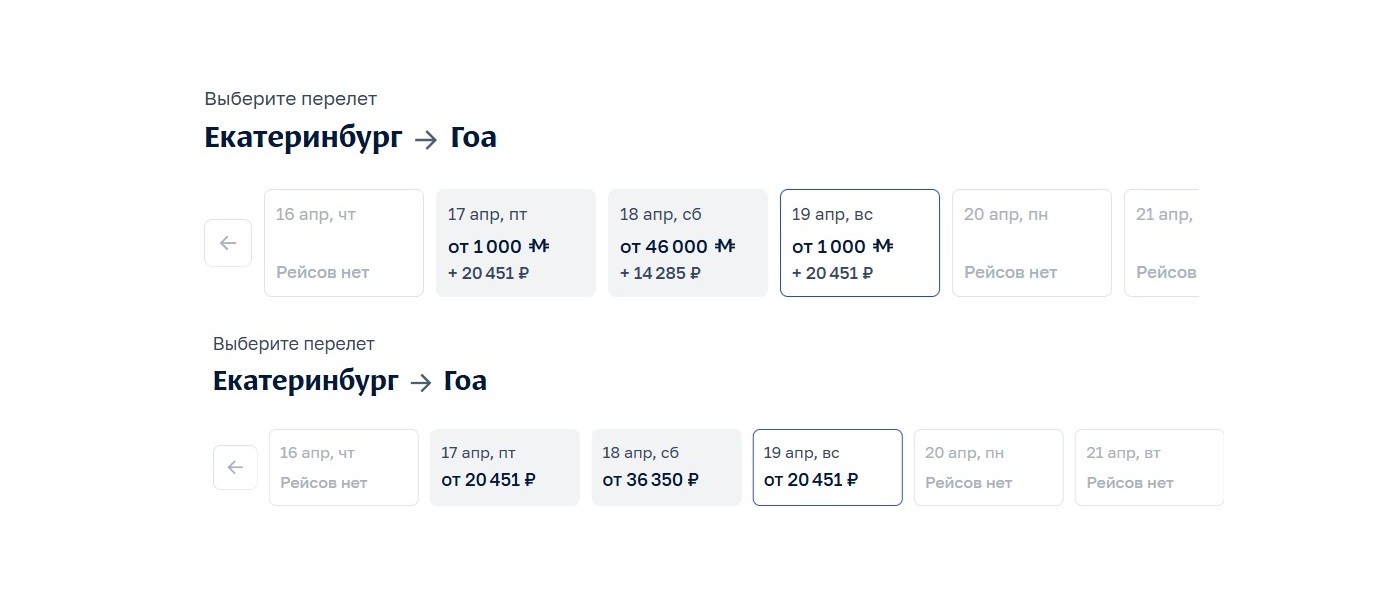 Ну а самая интересная экономия обнаружилась на маршруте Екатеринбург – Гоа. 19 апреля из Кольцово можно улететь за 1 тыс. миль и 20 451 руб. Если у туриста есть только живые деньги, ему билет обойдется в… 20 451 руб. Да и вообще это последний рейс в рамках полетной программы.