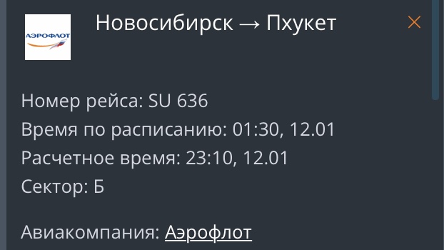 «Аэрофлот» почти на сутки задерживает вылет в Пхукет из Новосибирска. Рейс SU 636 должен был отправиться в Таиланд в 01:30 (21:30 мск), но теперь в соответствующей графе значится 23:10. Вылета ожидают 293 пассажира, в том числе 50 детей.