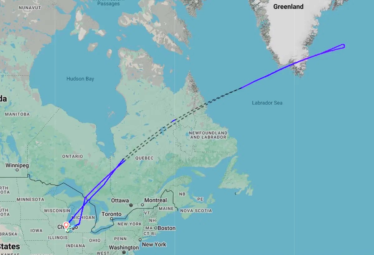 По расписанию 15-летний Boeing 777-300ER с тремя сотнями пассажиров должен был через 14 часов полета прибыть в столицу Индии. Согласно данным flightradar24, самолет пролетел над Канадой и Гренландией, прежде чем командир судна принял решение прекратить полет.
