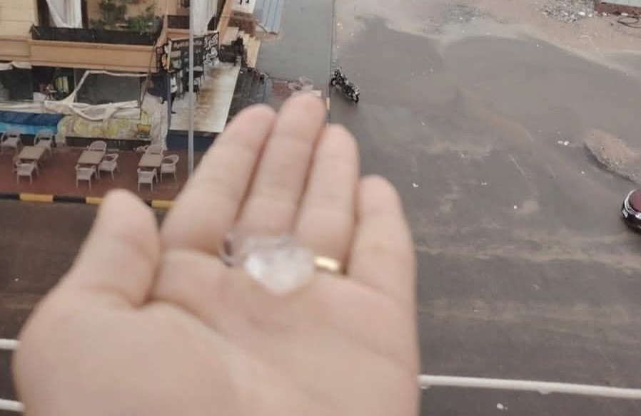 Уже вчера на курорте стало пасмурно, а с утра небо затянуло облаками, хотя еще было по-летнему тепло – плюс 29 градусов. К обеду тучи сгустились, и стало заметно прохладнее. Дождь с грозой разразился над северной частью Хургады. На видеокадрах в пабликах слышны раскаты грома, а туристы показывали падающие с неба градины размером до 15 мм. В это же самое время, по свидетельству очевидцев, над расположенными в южной части города отелями не пролилось ни капли.