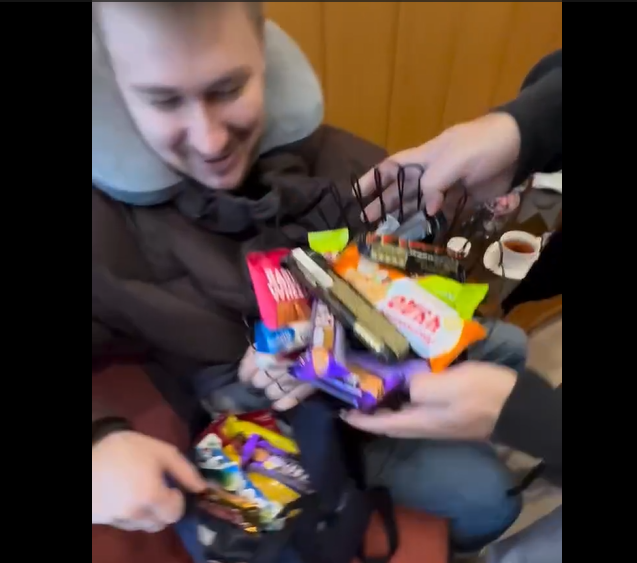 В минутном видео Гурам Амарян и его команда складывают в рюкзак буквально все, что попадается им под руку, – сначала конфеты, потом шахматы и даже внушительную вазу. Сделать это несложно, так как они находятся в маленькой комнате с диванчиком и одним столиком. Вот и все убранство.