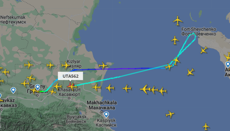 Отметим, что причина инцидента пока неизвестна. Судя по данным сервиса Flightradar, самолет практически долетел до казахстанского города Форт-Шевченко, описал длинную петлю и полетел обратно в Грозный.