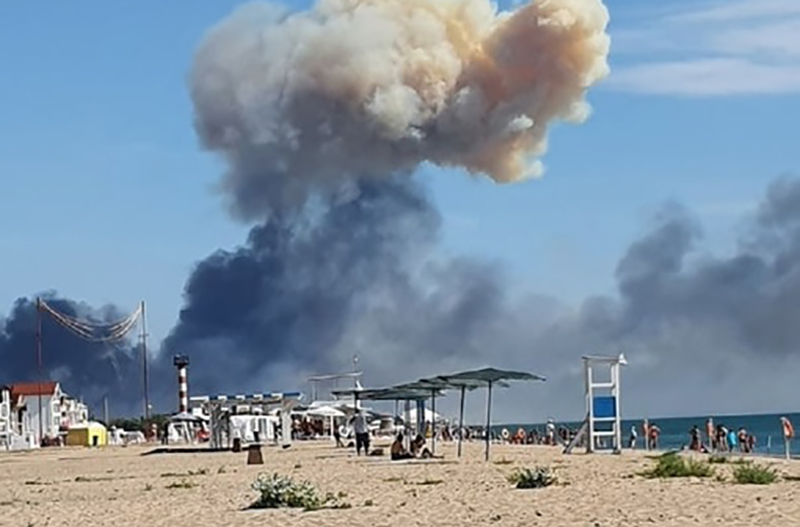 В сети уже появляются видео от туристов, которые на пляже Новофедоровки засняли моменты взрывов. Все они происходят достаточно далеко от мест отдыха, однако многие отпускники уже готовятся в срочном порядке покинуть поселок.