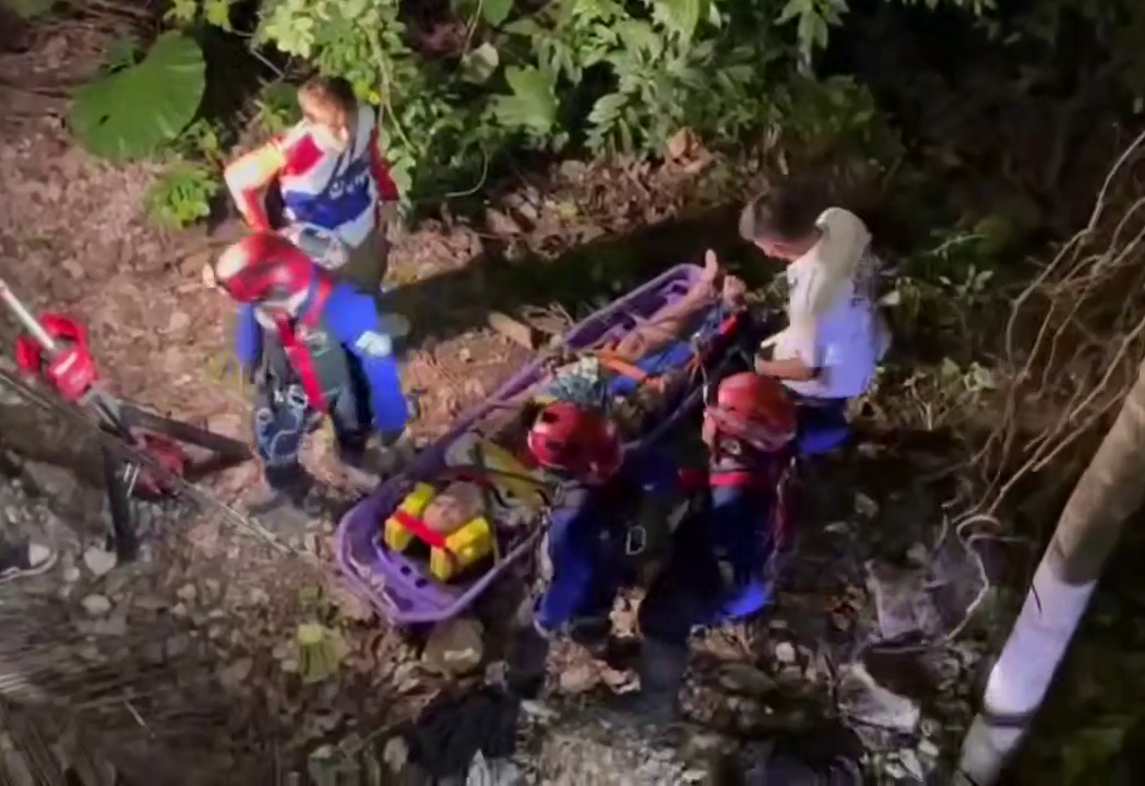 Спасатели оперативно прибыли на место происшествия и с помощью веревок спустились вниз, где оказали пострадавшему первую медицинскую помощь. Очевидно, что ветки несколько смягчили падение 36-летнего туриста, однако, кроме порезов и царапин, у него была сломана бедренная кость на правой ноге и травмы в районе шеи и поясницы. При эвакуации раненого привязали к носилкам, чтобы поднять по отвесной стене. Затем с помощью лебедки и усилий десятка человек россиянина вытащили из зарослей на дорогу.