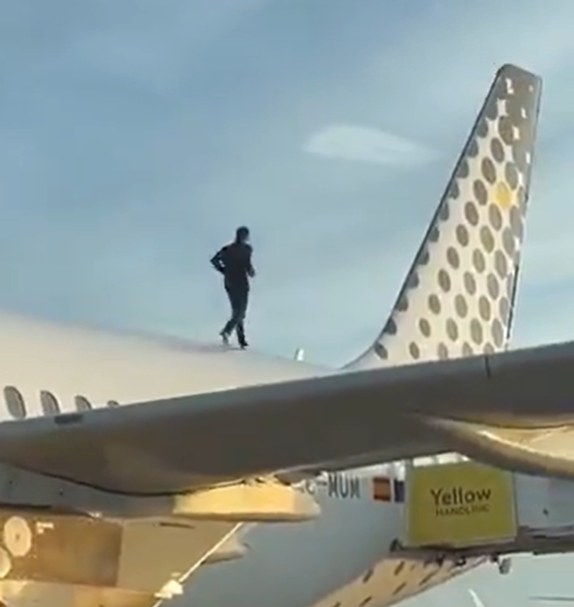 В аэропорту Валенсии слишком веселый пассажир чуть не сорвал рейс в Амстердам. Мужчина забрался на крышу Airbus A320 авиакомпании Vueling и устроил импровизированное шоу, которое попало на видео и быстро разошлось по соцсетям.
