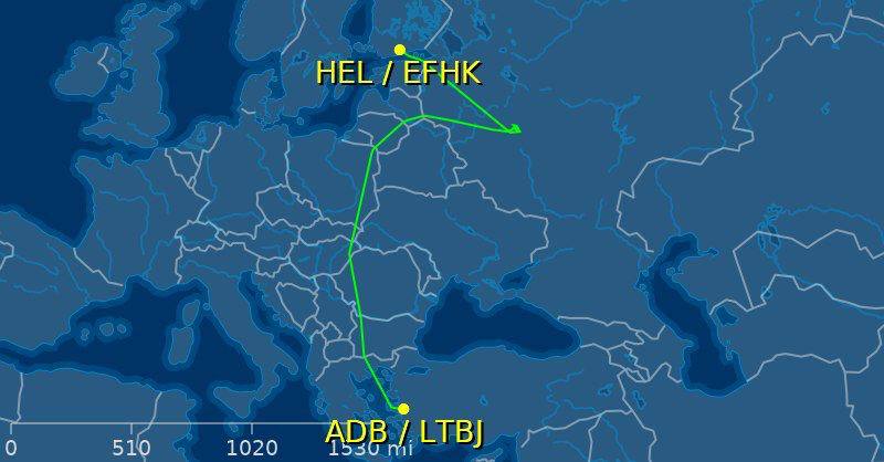 Борт, вылетевший из Измира в 21 час, не смог сесть в Москве по причине сложных метеоусловий. Почему его направили на аэродром в Хельсинки, финские службы не поясняют.