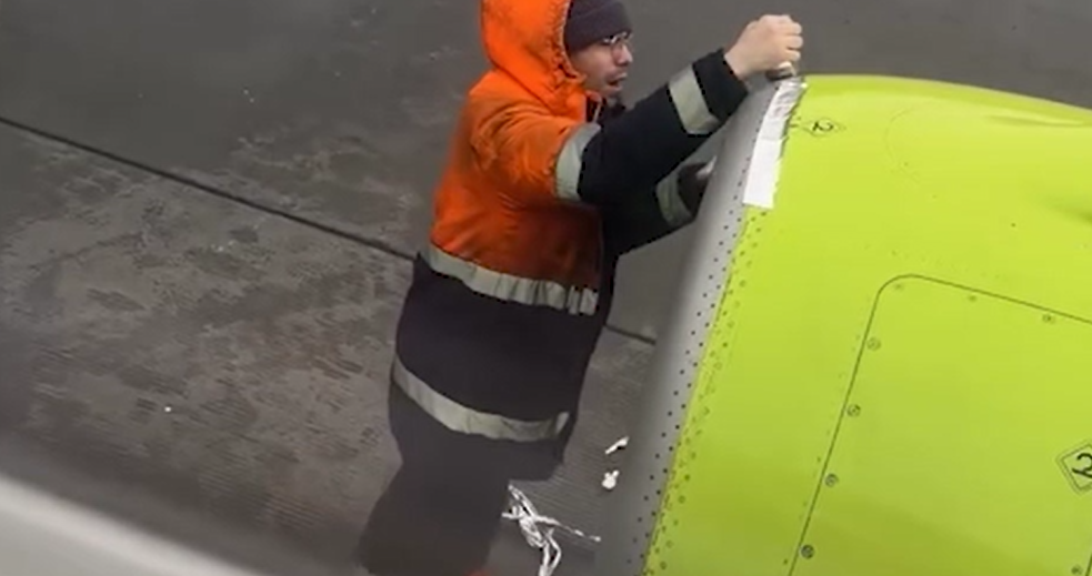 В соцсетях завирусилось видео с обслуживанием самолета S7 в Новосибирске. Пассажиры перед вылетом сняли, как техник заклеивает часть двигателя лентой, внешне похожей на обычный скотч. В итоге у многих пользователей это вызвало настоящую панику.