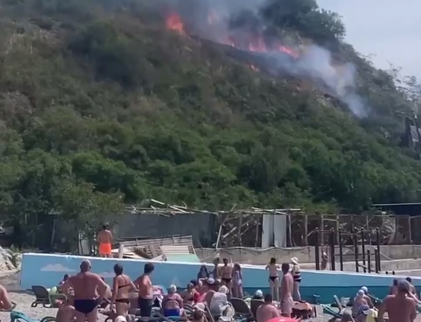 В Крыму локализовали пожар рядом с гостиницей «Ялта-Интурист». В ролике, который распространился в соцсетях, видно, что деревья горят всего в нескольких десятках метров от пляжа, а туристы не спешат прерывать отдых и уходить в более безопасное место.