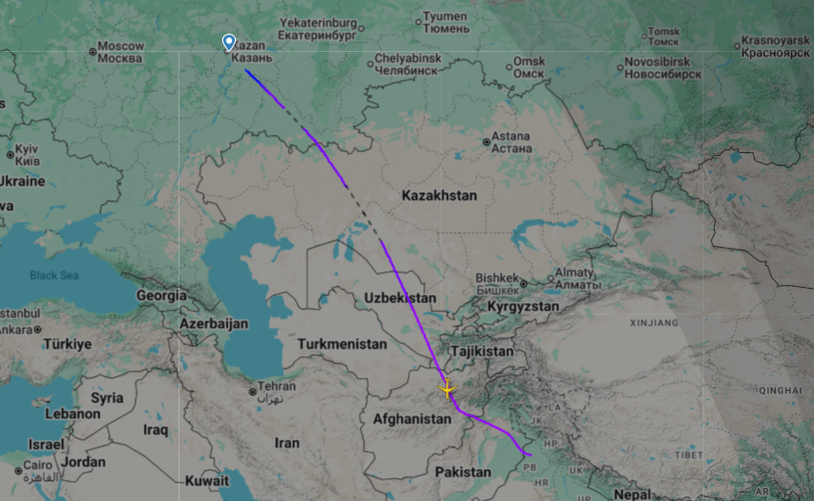 Рейс вылетел в Таиланд в 10:39. Судя по данным Flightradar, его выполняет Airbus A330, который прибыл в Казань маршрутом из Камрани ночью. Действительно, он опоздал на 4,5 часа.
