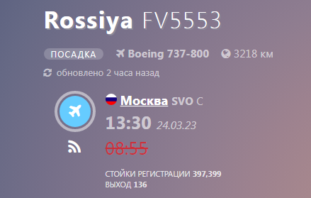 Вылет Boeing 737 из Шереметьево по расписанию должен был состояться в 08:55. Пассажиров сначала посадили в самолет, а затем отправление отложили до 10:30. Людей на автобусах отвезли обратно в здание аэровокзала.