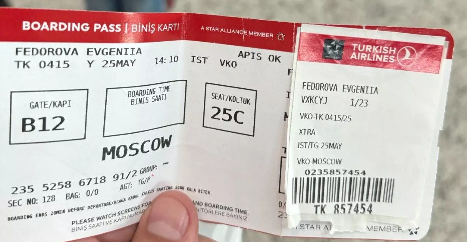 Мужчина по имени Никита благополучно сдал багаж и отправился в зал ожидания вылета. На самом деле на руках он имел посадочный на рейс ТК 0415, причем на имя Федоровой Евгении. Отправление «турецкого» самолета во Внуково было назначено на 14:10, а «российского» в Домодедово – на 14:45. Турист, все еще не зная об ошибке, направился к гейту к представителям «Уральских авиалиний». Однако те, посмотрев на талон пассажира, сообщили, что «его» рейс Turkish Airlines уже улетел. В этот момент россиянин понял, что ему выдали ошибочный посадочный.