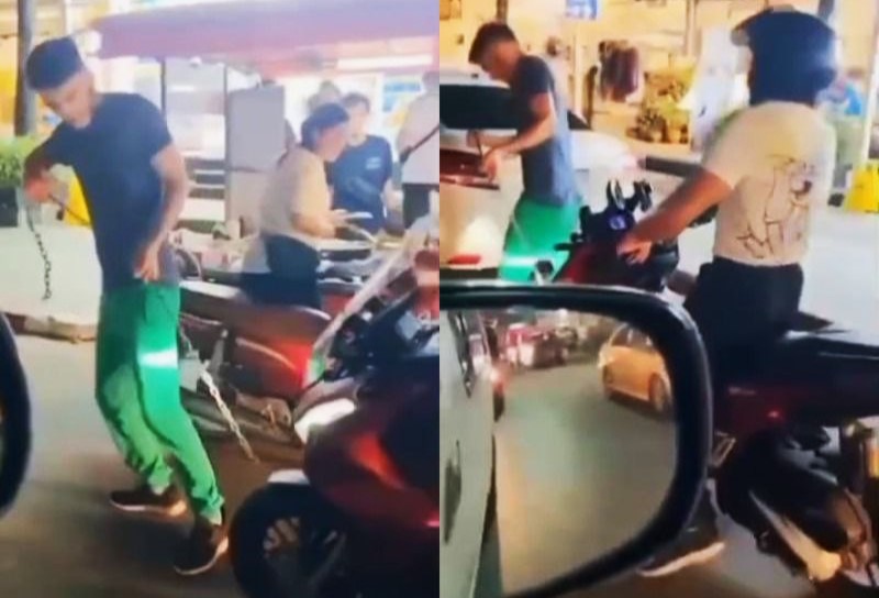 Эпизод снял и опубликовал проезжавший мимо местный житель. По его утверждению, он сначала обратил внимание на таксистов, которые советовали туристам не трогать байк, потому что на нем якобы полицейская блокировка. Однако те, не обращая внимания на окружающих, упрямо продолжали тащить машину по оживленной улице.