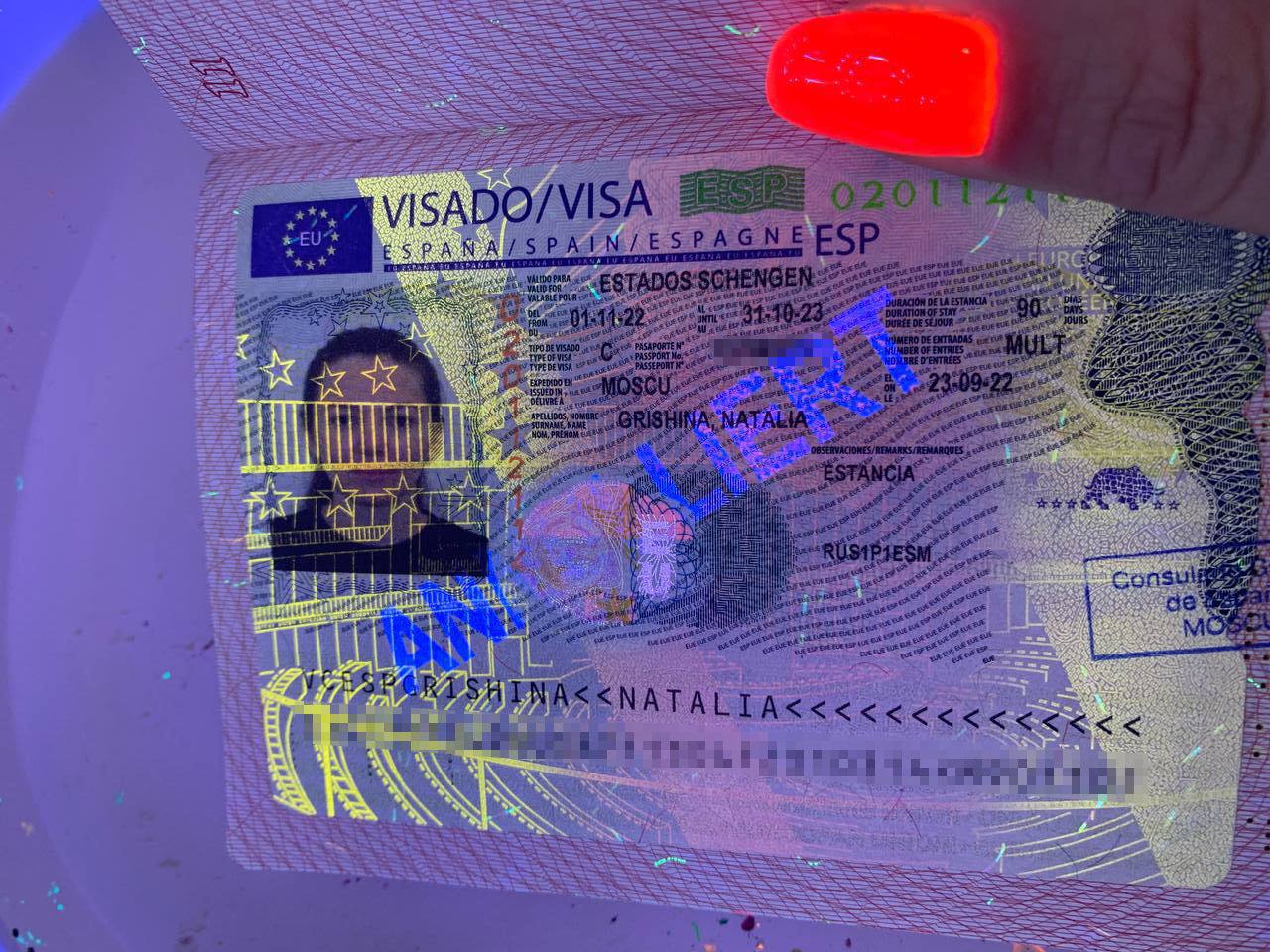 «Сейчас нахожусь в Ереване. Сегодня утром пыталась вылететь из аэропорта в город Ларнака. Но на пограничном контроле сказали, что моя шенгенская виза аннулирована. Раньше я этой визой не пользовалась, получила ее в Москве в визовом центре Испании. Внешне с документом все в порядке, никаких лишних отметок нет. Но при просвечивании ультрафиолетом на бланке есть штамп, что виза аннулирована. Правонарушений в Испании или других странах Европы я не совершала. Предупреждений о возможной аннуляции также не приходило. Пока я в Ереване, и, наверное, только в понедельник удастся связаться с представителями испанского посольства», – пояснила Наталья Гришина в видеообращении.