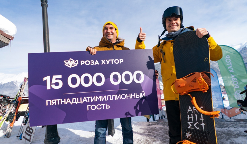У верхней станции канатной дороги Олимпия в торжественной обстановке 15-миллионному гостю вручили подарочный сертификат от курорта на летний отдых для двоих, который включает 4 ночи проживания в любые даты летнего сезона в отеле Rosa Springs 4* в Горной Олимпийской деревне и одну ночь в горном кемпинге «Нахазо» на высоте 1900 м. Дополнительно курорт подарил ужин на двоих в ресторане альпийской кухни «Дичь», чтобы гость мог сразу отметить событие.