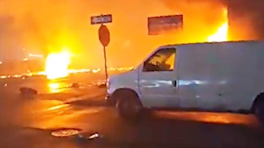 ЧП случилось в 5 км от северо-восточного аэропорта города, который принимает самолеты малой авиации. Борт рухнул на парковку магазина, протаранив несколько машин. После падения начались пожары в жилом квартале, загорелось несколько домов.