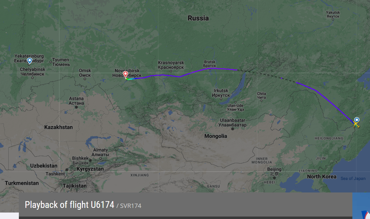 По данным flightradar24, рейс U6 174 отправился из Хабаровска в 09:18 по местному времени вместо 07:55 по расписанию. Через какое-то время после взлета пассажирам сообщили, что самолет приземлится в Новосибирске для дозаправки.