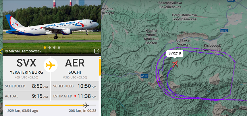 Так, U6-219 из Екатеринбурга сделал несколько кругов над Кисловодском и ушел в Минеральные Воды, UT-511 из Сургута улетел в Грозный, IO-1826 из Антальи, покружив над морем, двинулся во Владикавказ.