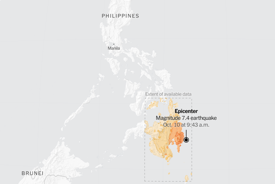 Эпицентр землетрясения, по словам ученых, располагался примерно в 19 км от побережья Минданао, в 62 км от города Манай и в 144 км от более крупного Давао. Поступали сообщения о панике среди населения и повреждении некоторых зданий, дорог и мостов. Президент Филиппин распорядился о немедленной эвакуации прибрежных районов и мобилизации спасательных служб. Была объявлена угроза цунами с прогнозом волн в отдельных районах до 1–3 м, позднее она была снята.