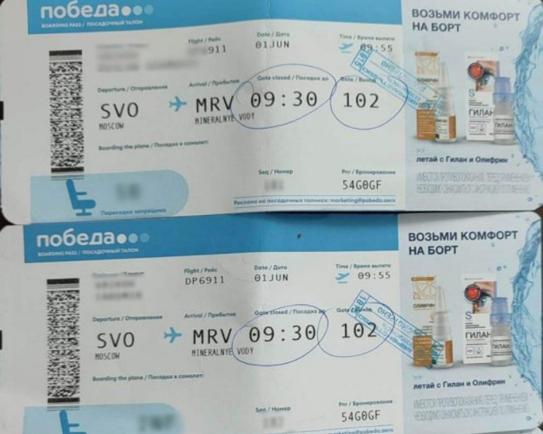 Со слов путешественников, они должны были отправиться из Шереметьево в Минеральные Воды утром 1 июня. Регистрацию прошли вовремя, сдали багаж. На посадочном талоне указано, что проход на борт осуществляется до 09:30, однако пассажиры прибыли к гейту «за пару минут до окончания» посадки.