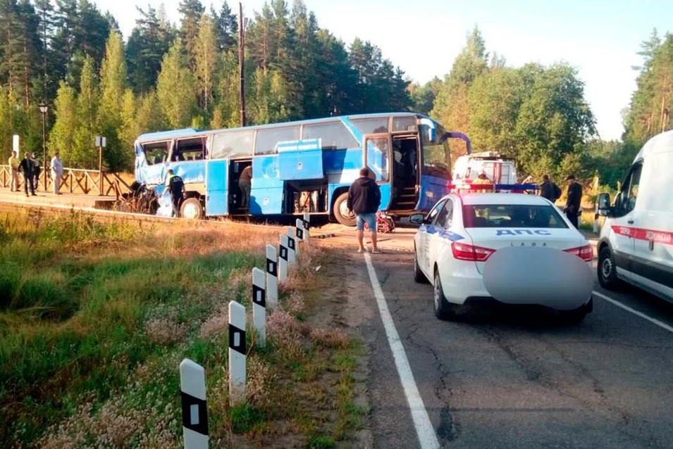 В понедельник, 4 августа, на регулируемом железнодорожном переезде между станциями Лодейное Поле и Олонец в Ленинградской области произошло серьезное ДТП. На 254 км Мурманского шоссе грузовой поезд столкнулся с пассажирским автобусом, перевозившим туристов.