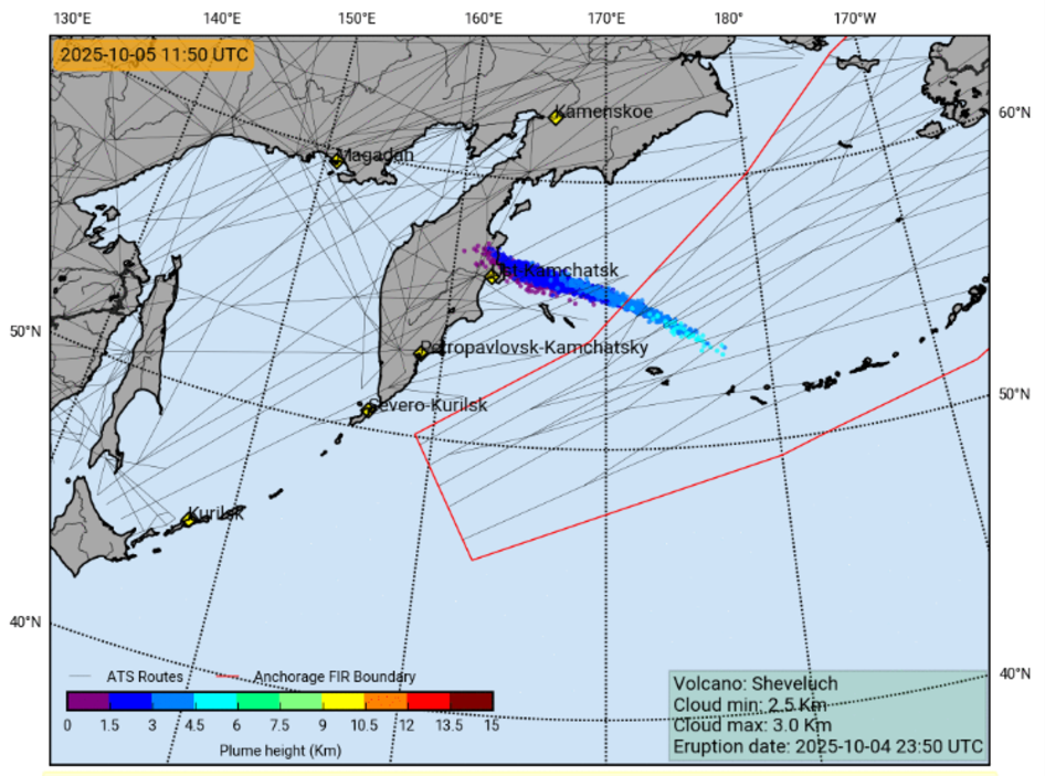 По данным Камчатской группы реагирования KVERT, наблюдается взрывно-экструзионное извержение из кратера «Молодой Шивелуч». Сегодня с восточного склона вулкана столб вулканического пепла поднялся до 3 тыс. м. Согласно спутниковым снимкам, шлейф растянулся на 125 км в юго-восточном направлении в океан. Природное явление может помешать полетам местной авиации. Вулкану присвоен код авиационной опасности – оранжевый. В течение нескольких дней сохраняется прогноз еще более мощных выбросов – вплоть до 10 тыс. м.