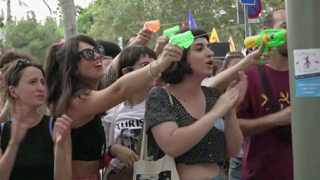 Неизвестно, как протестующие против «понаехавших» вычисляли их среди коренных испанцев, но посетители открытых площадок кафе и ресторанов были облиты из водяных пистолетов. Уставшие от туристов горожане попортили настроение и постояльцам отелей, устроив возле входов пикеты с обидными кричалками.