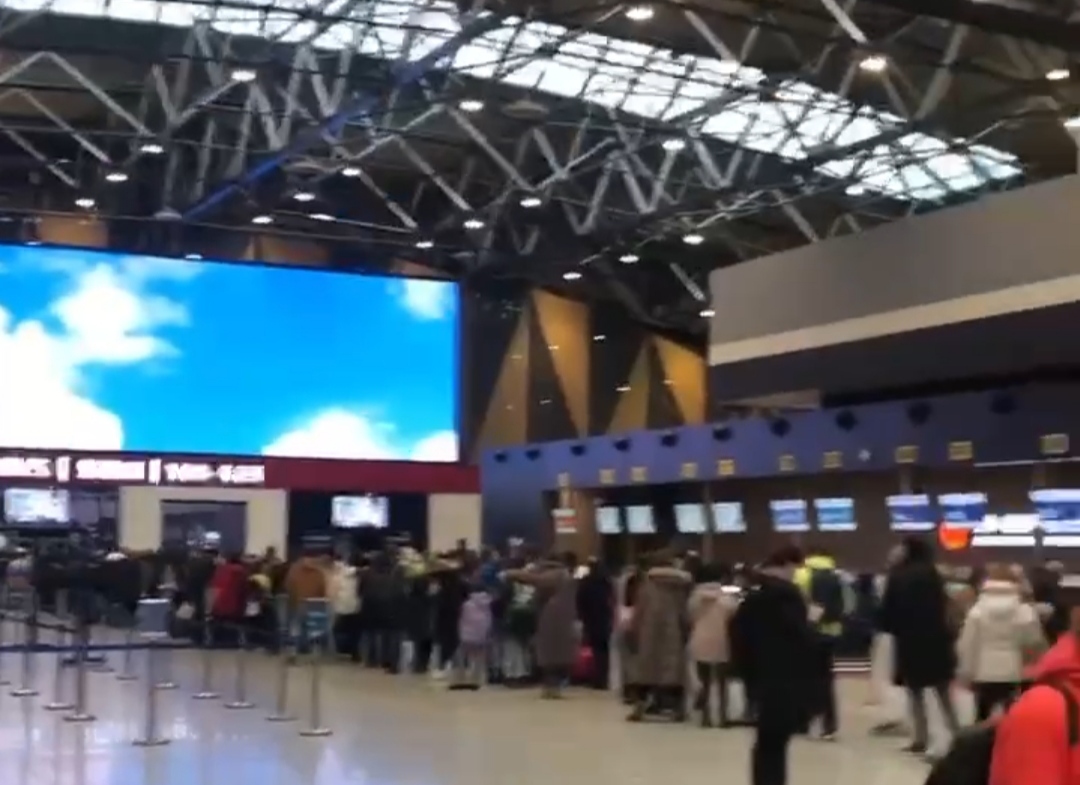 Пассажиры, вылетавшие из терминала В Шереметьево, сегодня утром столкнулись с большими очередями на входе в зону досмотра. Вереница из людей выстраивалась вдоль стоек «Аэрофлота» и доходила до эскалаторов. «Это за сколько надо приезжать до вылета, чтобы не опоздать?» – удивлялись люди, увидев ролик.