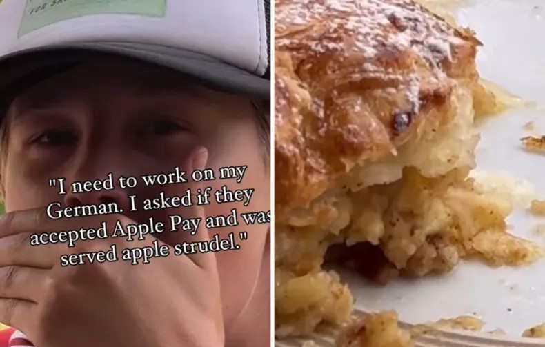 Курьезное недопонимание туристы сняли на видео и запостили в соцсетях. В клипе видно, как дети со смехом поглощают вкусный десерт. Веселые картинки снабдили надписями: «Мне нужно поработать над своим немецким» и «Apple Pay и яблочный пирог, конечно, очень похожи».