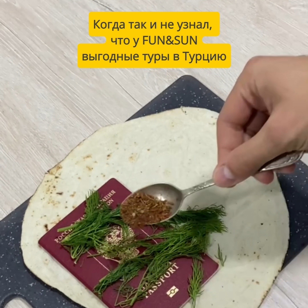 В редакцию TourDom.ru обратились пользователи, которые обнаружили странный ролик в соцсетях туроператора Fun & Sun: «Маркетологи додумались завернуть российский паспорт в лаваш».