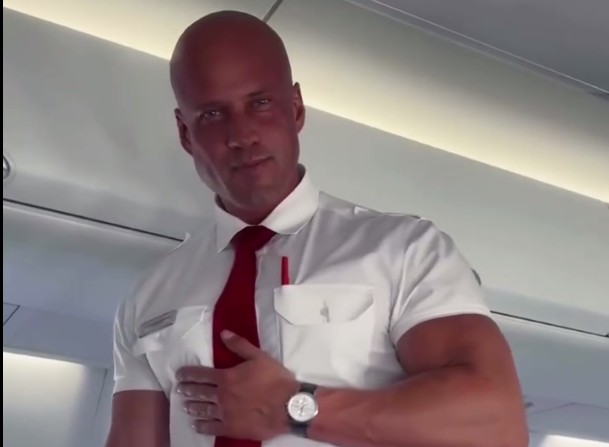 У брутального бортпроводника Данилы из «Аэрофлота» появился конкурент из авиакомпании «Победа». В завирусившемся ролике лысый и подкачанный мужчина с легкой улыбкой разносит воду, общается по бортовой связи и что-то ищет в рабочем планшете.