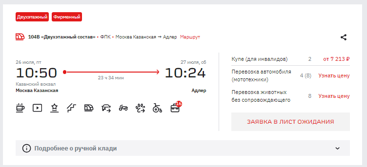 РЖД запустили обещанную ранее туристам опцию в системе бронирования на сайте и в приложении. Это лист ожидания билетов на те поезда, в которых закончились свободные места. Тот пассажир, который не смог найти подходящий для себя билет, может заполнить специальную форму и получить оповещение, когда эти места появятся. Плюс новой услуги – клиент получит индивидуальную ссылку на билет. Другие пассажиры ее не увидят.