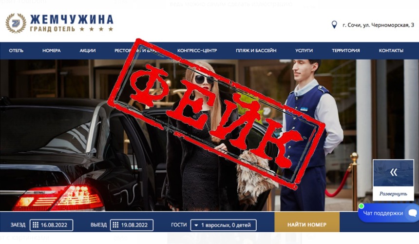 Как сообщила TourDom.ru представитель одного из турагентств, ее клиенты решили самостоятельно забронировать номера в популярном сочинском отеле «Жемчужина». Туристы нашли сайт https://zhemchyzhina.com, который практически полностью копирует оригинальный ресурс. Россияне оплатили более 100 тыс. за бронирование номера, но, когда они прибыли заселяться в гостиницу, оказалось, что никакого резерва нет.