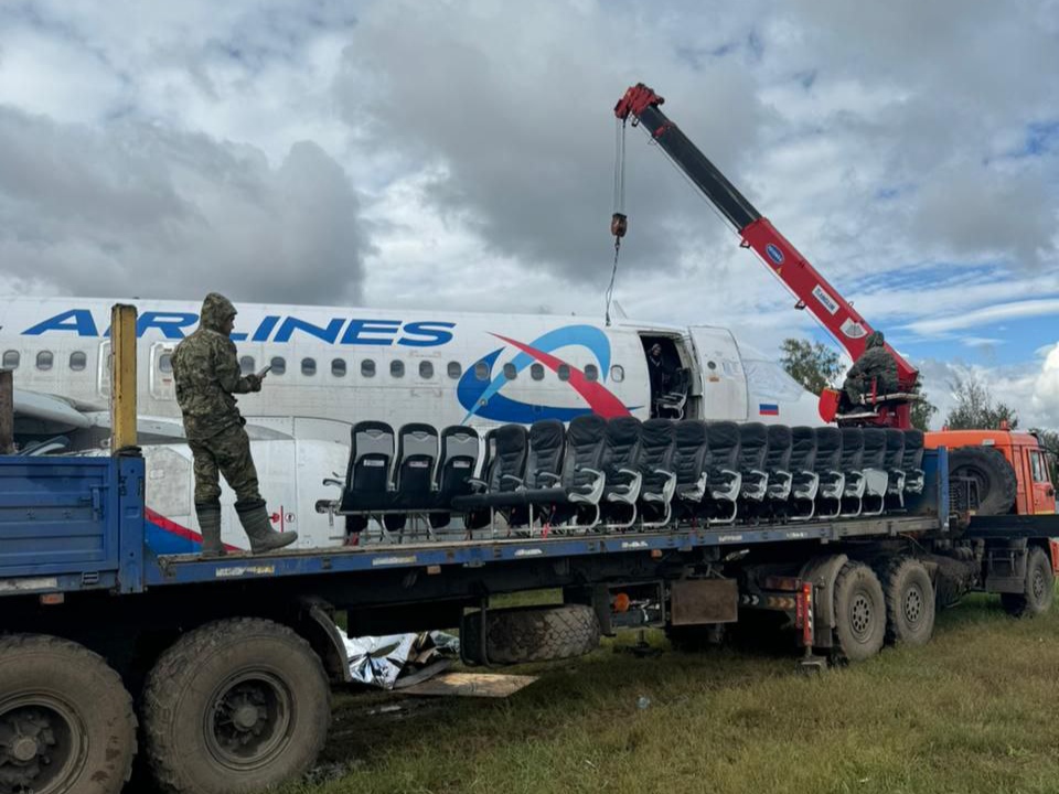 Судя по фотографиям, которые разместила пресс-служба перевозчика, первыми поле покинули кресла из пассажирского салона. Далее работники приступят к демонтажу деталей и агрегатов.