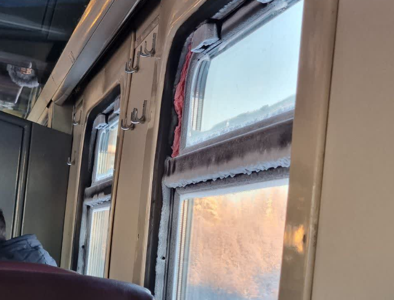 По словам пассажиров, только в 7 часов утра, когда поезд уже проехал две трети пути и прибыл на станцию Бологое, тепло включили, но в вагоне по-прежнему «сохранялась мерзлота».