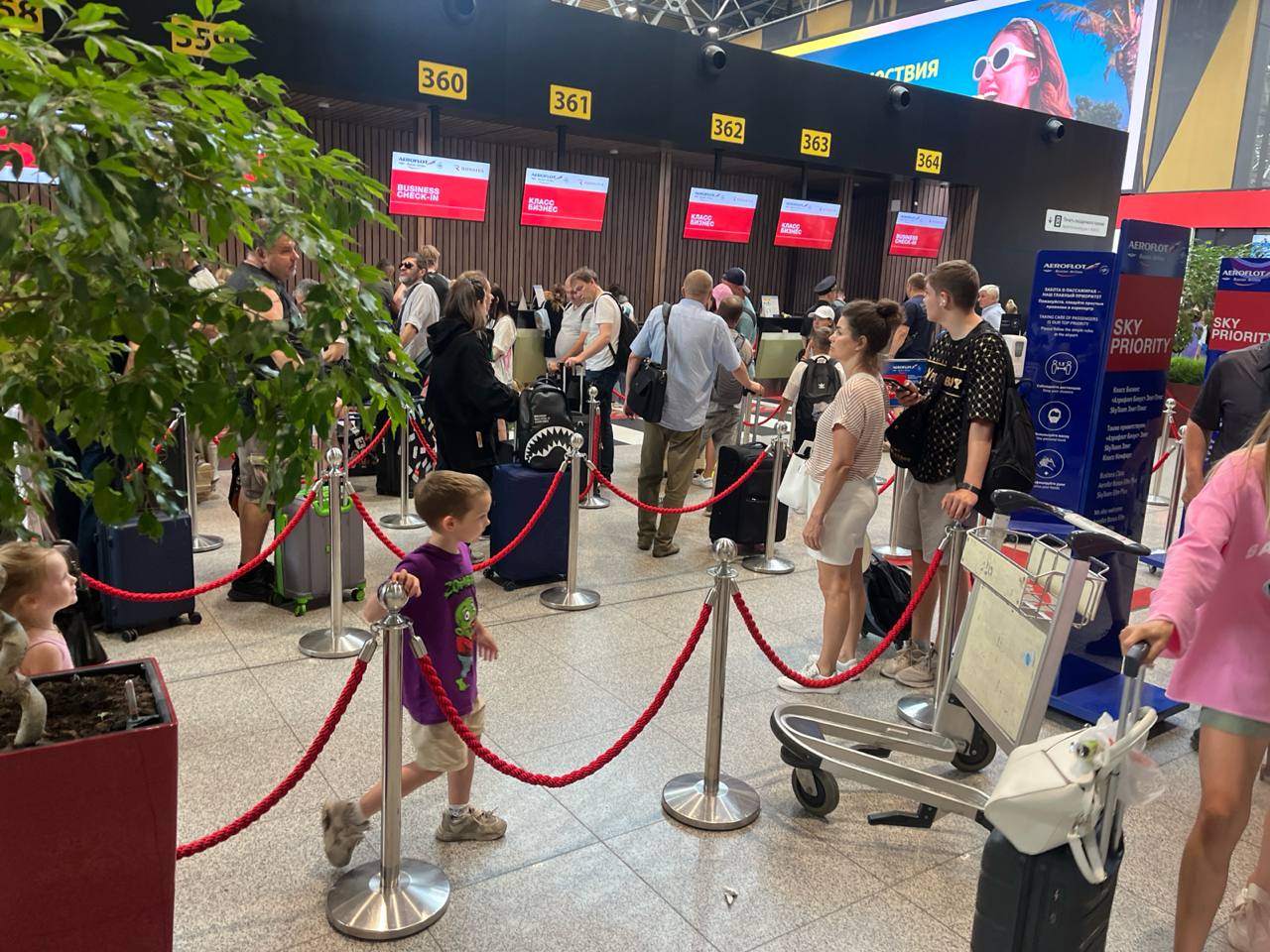 Подписчик тг-канала «Крыша ТурДома», находящийся сейчас в аэропорту Шереметьево, сообщил нам о больших очередях на регистрацию в терминале B (внутренние рейсы).