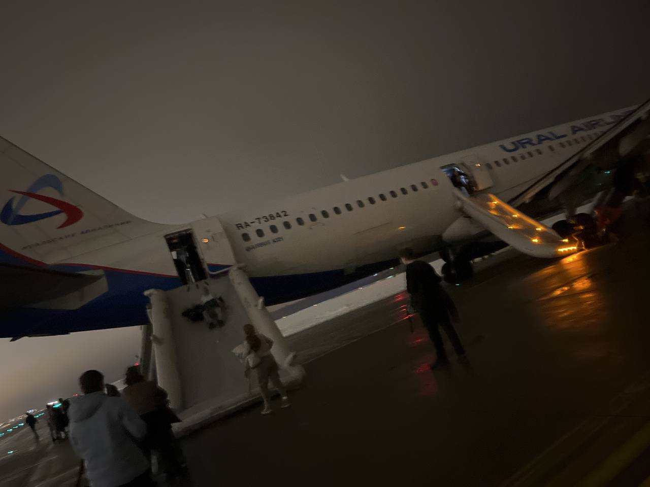 Пассажиров вывели на улицу, выдали воду, принесли вещи. Рейс должен был вылететь в 19:30, по состоянию на 20:20 его перенесли на 21:30. «Дожидаемся свободного борта “Уральских авиалиний”, вылет переносят каждые полчаса», – сообщила пассажир.
