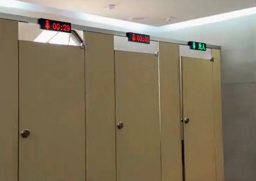 Оригинальную идею в организации работы общественного туалета применили в Китае. В провинции Шаньси на популярном у туристов направлении над кабинками для женщин не просто установили LED-табло со сменой цвета, напоминающее самолетное зеленое-красное, но и внедрили в конструкцию таймер.