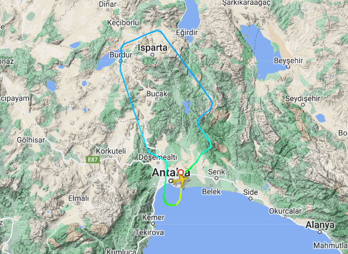 По словам туриста, самолет набрал высоту, вышел из зоны грозы, и тут командир объявил, что борт вернется в Анталью для проверки состояния электроники. Боинг, вылетевший в 08:25 по местному времени, в 09:57 уже приземлился в аэропорту Антальи.