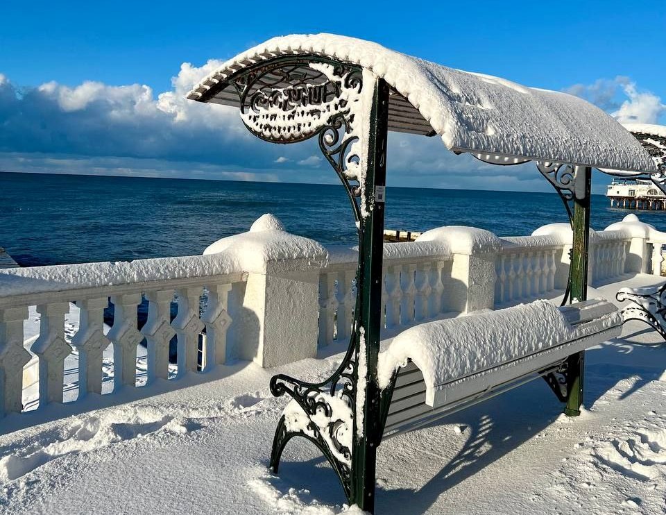 В Сочи сегодня одновременно и снежный коллапс, и зимняя сказка. После обильных снегопадов техника не успевает чистить улицы, в аэропорту Адлера с утра задерживались рейсы, местные жители и туристы сменили самокаты и велосипеды на лыжи и сноуборды. Зато пейзажи головокружительные. Особенно колоритно смотрятся вечнозеленые пальмы, укутанные снегом.
