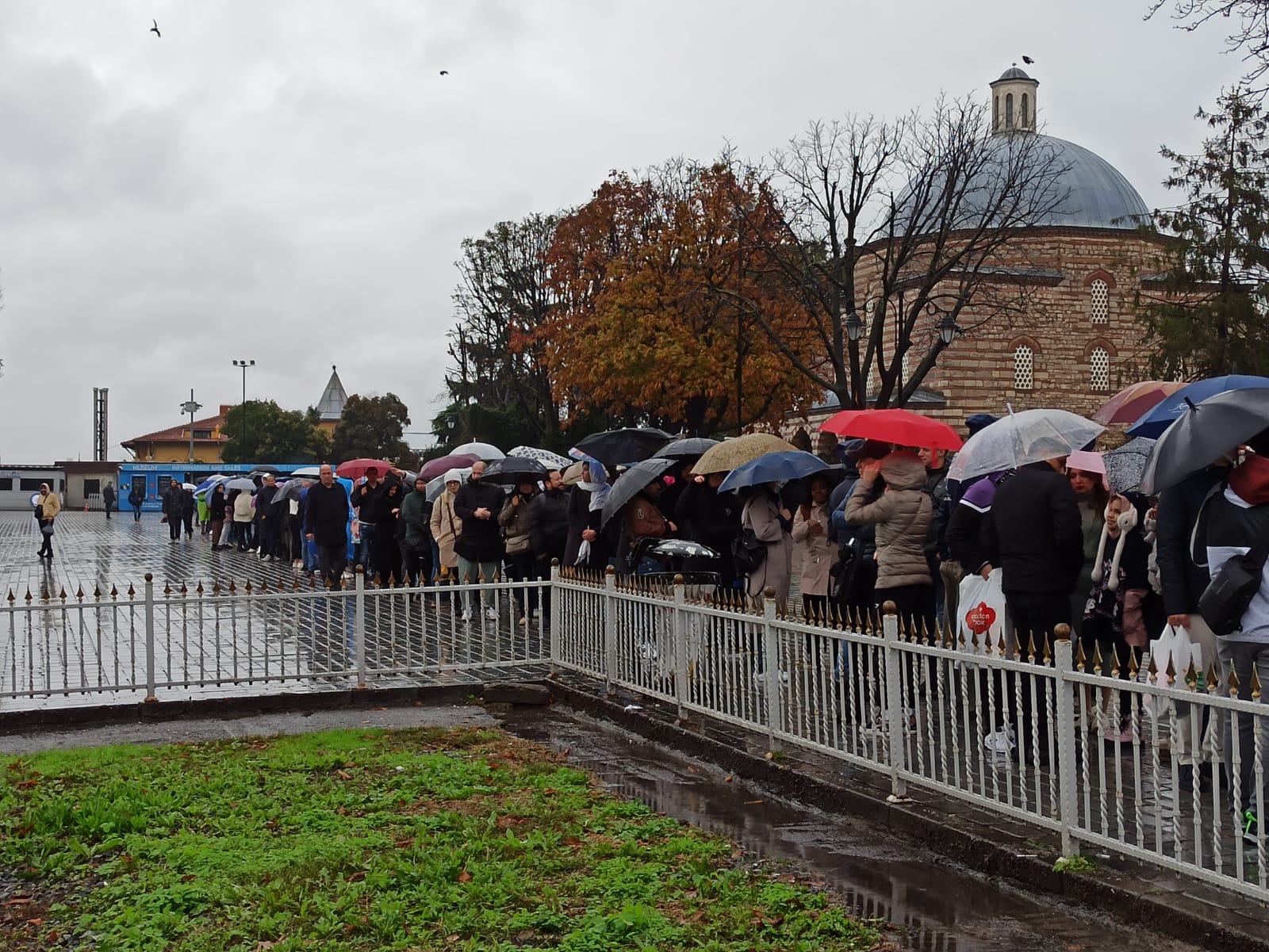 Как сообщает источник TourDom.ru, сейчас находящийся в Стамбуле, погода не мешает туристам знакомиться с достопримечательностями и наслаждаться прогулками по городу. Только теперь в наиболее популярных местах не просто очереди, а очереди из зонтиков. Как обещают синоптики, аномальные явления, в том числе шторм и ураганный ветер, будут наблюдаться минимум до понедельника.