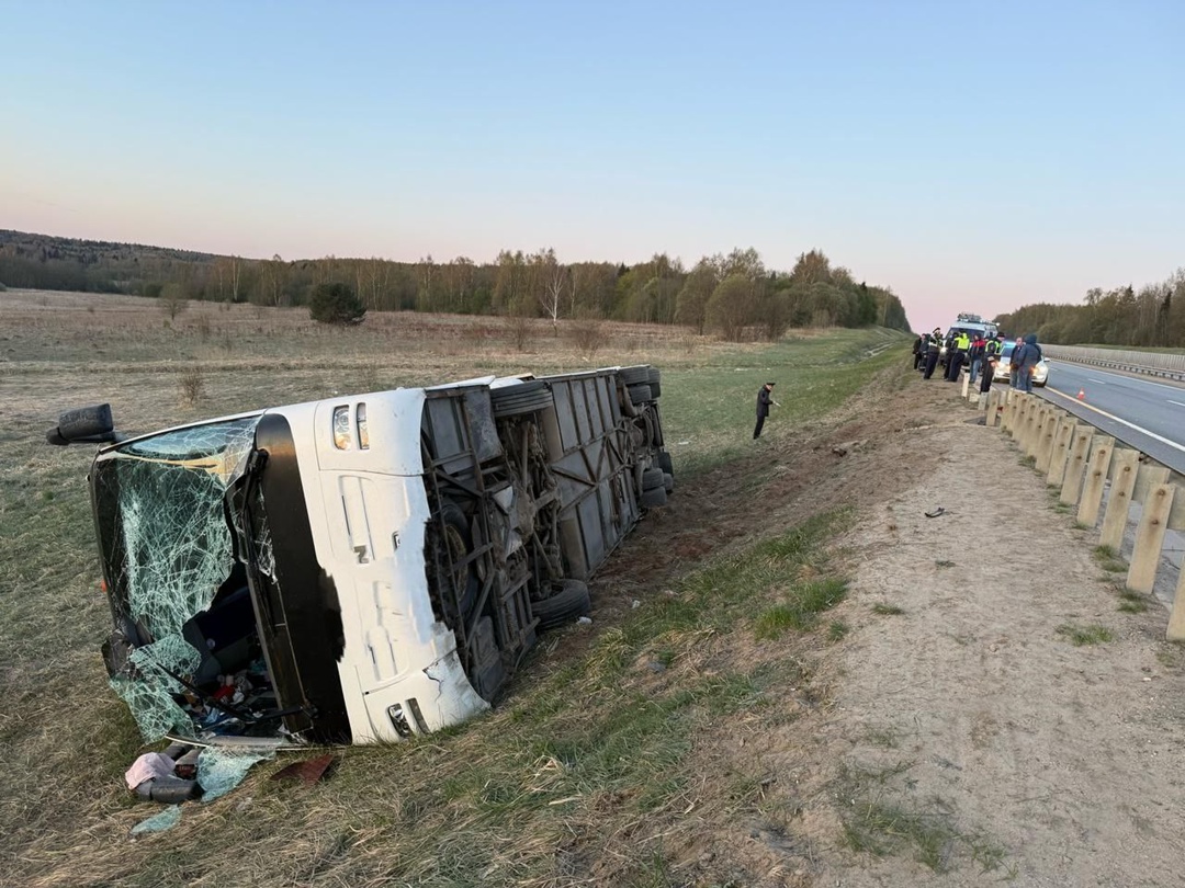 Как сообщили в УМВД России по Владимирской области, в 02:40 автобус съехал в кювет и опрокинулся. Причины происшествия выясняются, предварительно водитель не справился с управлением. Судя по фото с места аварии, пассажирам пришлось покидать автобус через разбитое лобовое стекло.