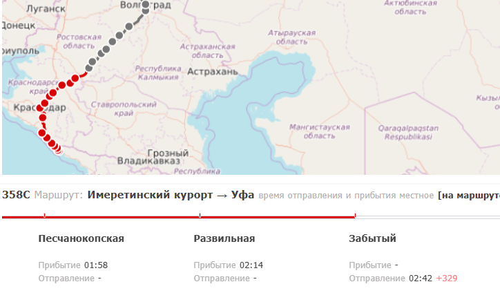 ЧП повлияло на график движения поездов, соединяющих российский юг и регионы Поволжья, Урала, Сибири. Опоздания зафиксированы как минимум у 9 составов. Наиболее серьезные превышают 5 часов. С таким опозданием идут № 358 Имеретинский Курорт – Уфа, № 59 Новокузнецк – Кисловодск, № 523 Екатеринбург – Адлер. Более чем на 4 часа позже прибывают на станции № 255 Челябинск – Новороссийск, № 509 Казань – Новороссийск, № 254 Новороссийск – Уфа. Чуть меньше отставания у № 524 Адлер – Екатеринбург, № 98 Кисловодск – Тында, № 202 Анапа – Красноярск.