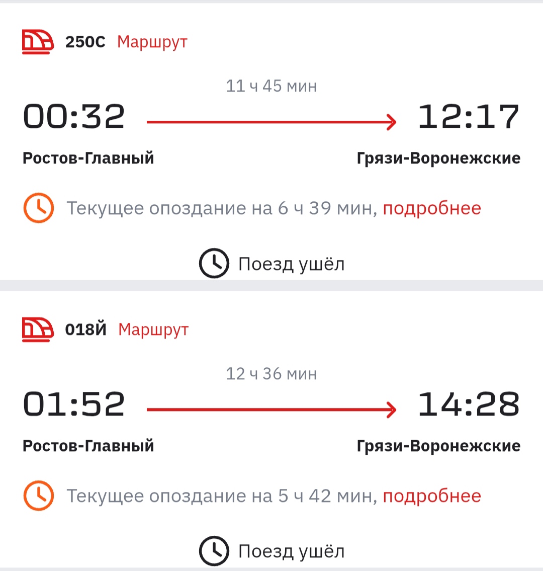 У составов, движущихся на юг, отставания от графика меньше. Самые большие задержки в 5 часов у № 480 Санкт-Петербург – Сухум и № 114 Москва – Краснодар.