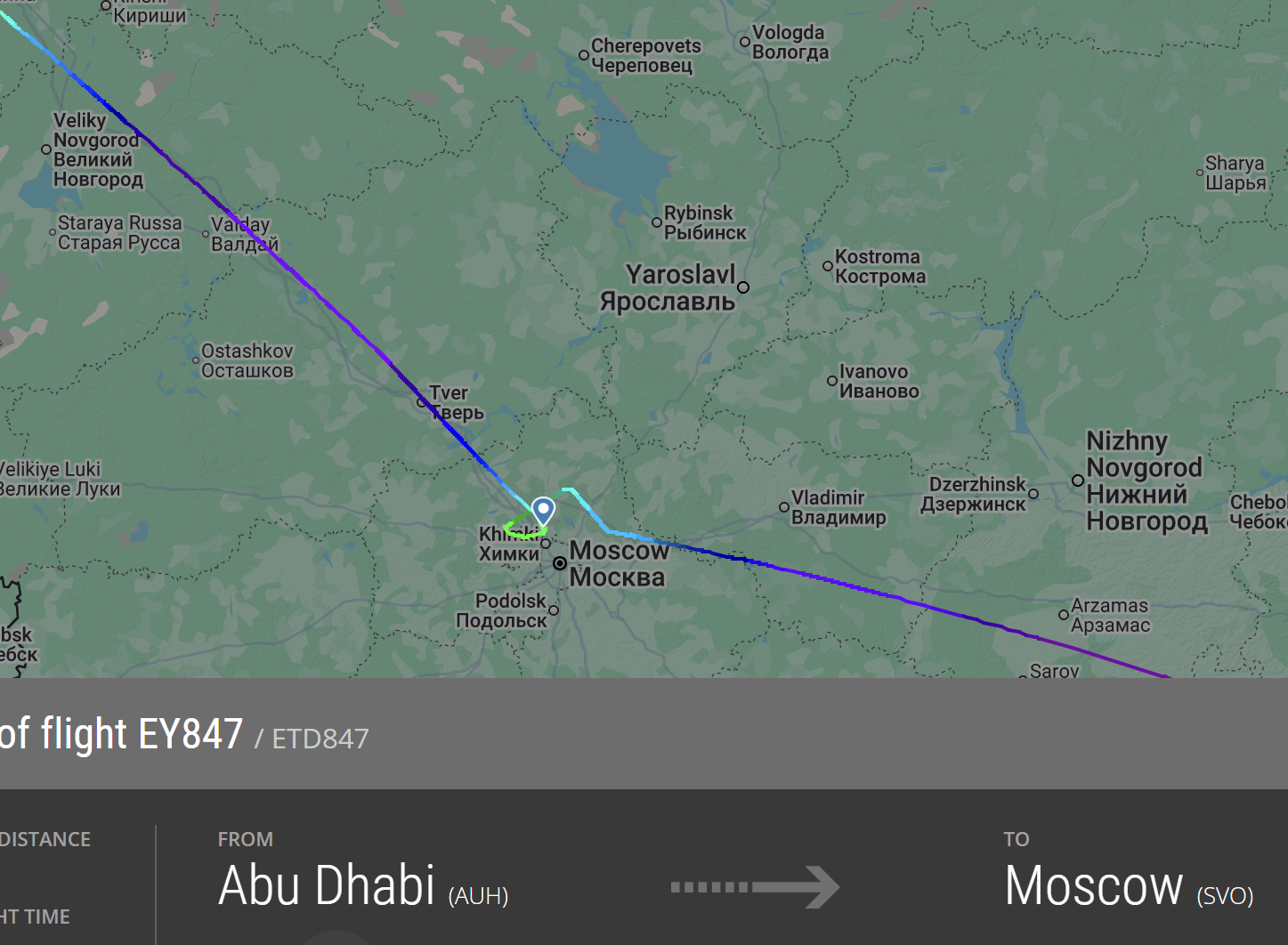 Из-за продолжительного мощного снегопада в Москве самолет Etihad Airways EY 847, следовавший из Абу-Даби в Шереметьево, был перенаправлен на запасной аэродром в Санкт-Петербург.